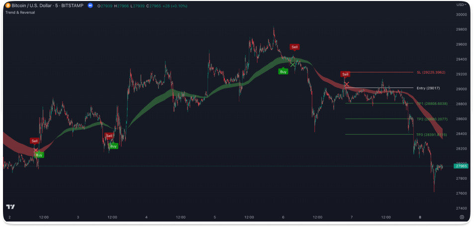 A unified dashboard with trend, volume, and volatility at a glance. Smart trendlines, reversal clouds, and zero-lag trails keep the structure clear, while the built-in risk manager and custom alerts lock in discipline across any market